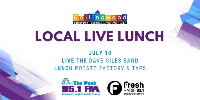 Local Live Lunch Where 95.1 THE PEAK FM Sheffer Court, Collingwood Map When Jul 10/19 12:00 PM - Jul 10/19 01:30 PM Age All LIVE The Dave Giles Band LUNCH Potato Factory & Taps