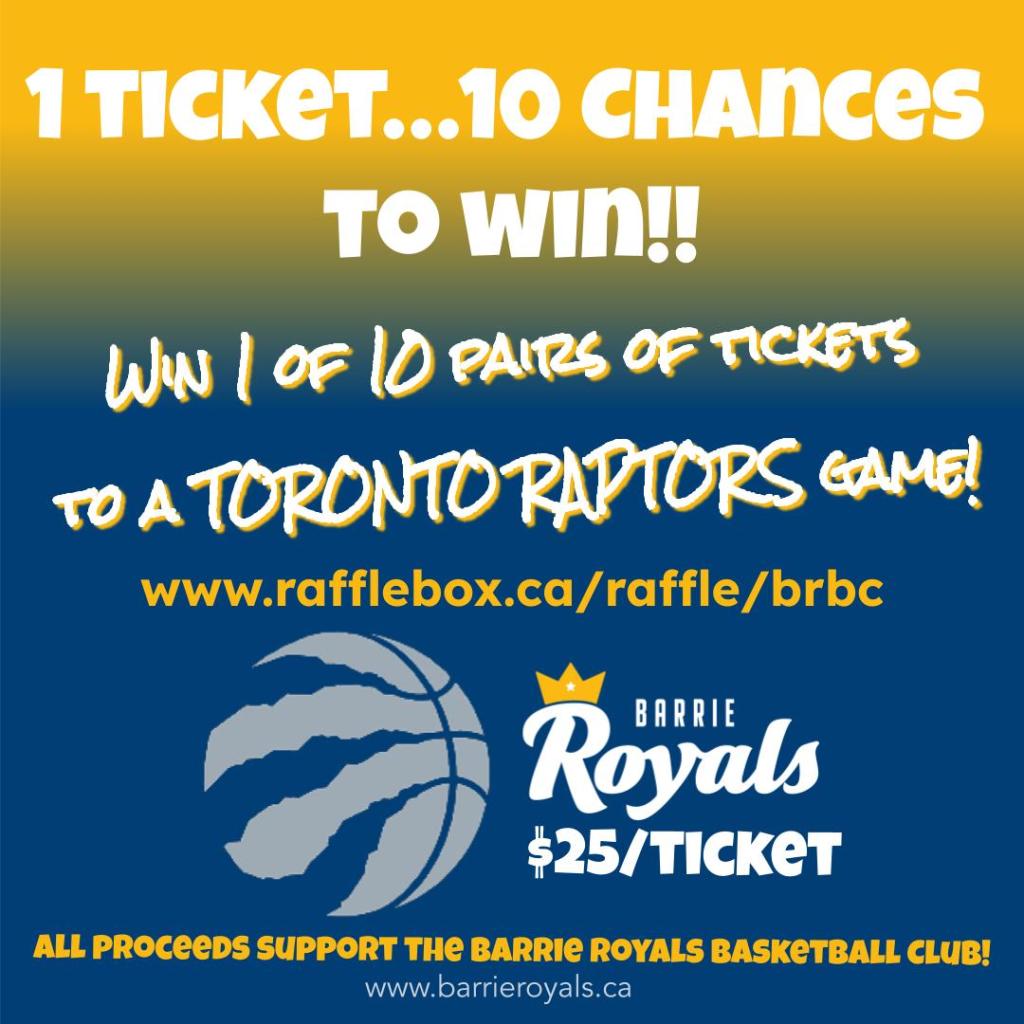 As a community organization the Barrie Royals Basketball Club is always looking for ways to fundraise and subsidize all of our basketball programming. This year they have an exciting new opportunity! The Royals have a Toronto Raptors Ticket Raffle which will be taking place from now until March 22, 2024. Throughout this time there are 10 chances to win a pair of Raptors tickets! One ticket gets the purchaser entry into all 10 draws! All proceeds raised from the Toronto Raptors raffle will go towards supporting the club with providing basketball opportunities to players and community members, now and in the future. The first draw is coming up on Dec. 8th! Tickets can be purchased by going to the Barrie Royals website https://www.barrieroyals.ca/, or directly to https://www.rafflebox.ca/raffle/brbc