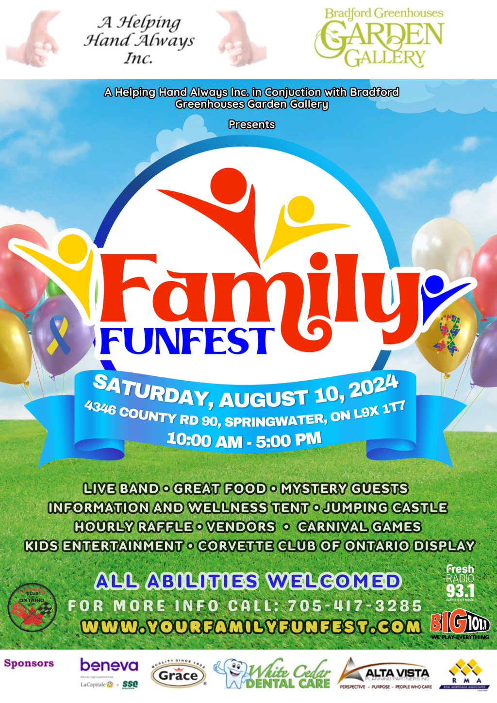 Family Funfest Where Bradford Greenhouses Garden Gallery, Springwater Map When Aug 10/24 10:00 AM - Aug 10/24 05:00 PM Age All Website yourfamilyfunfest.com
