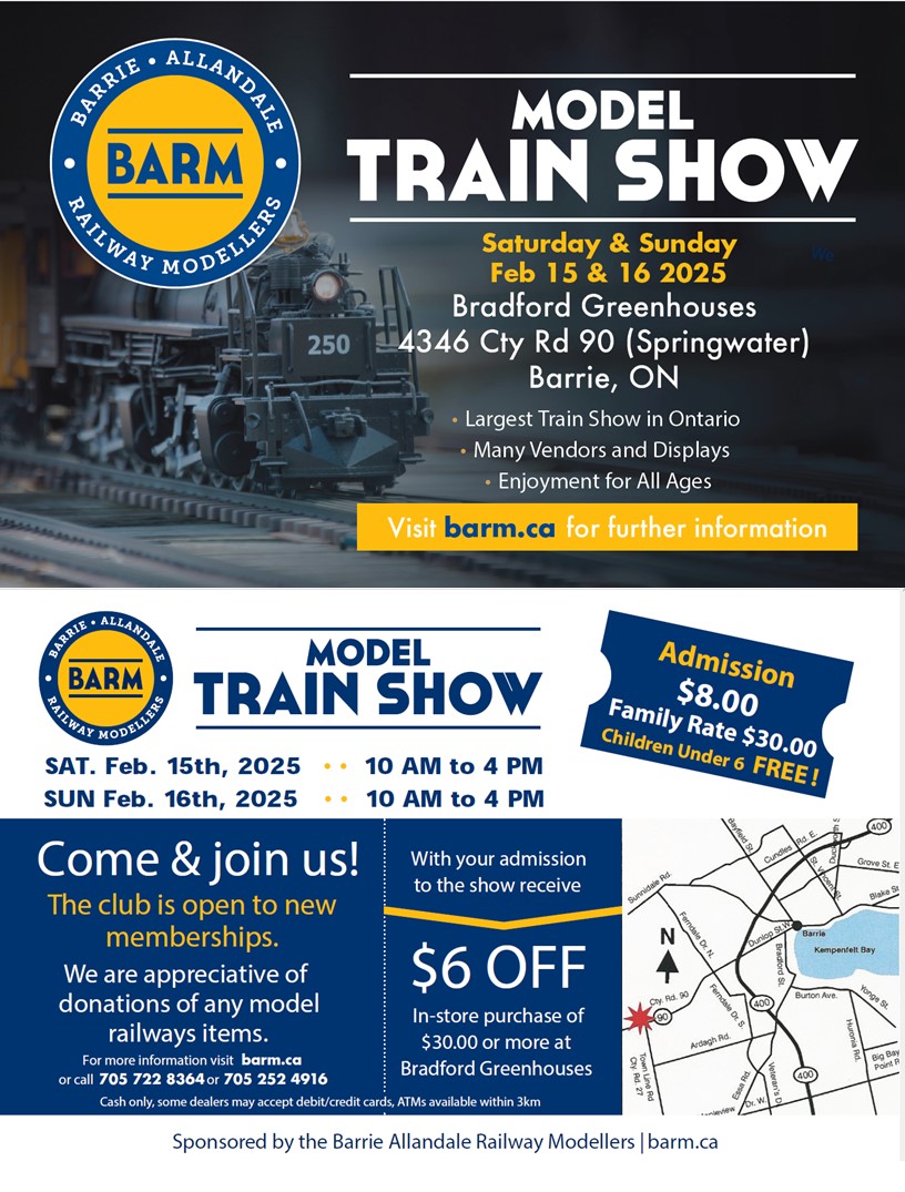 Model Train Show Where Bradford Greenhouses Garden Gallery, 4346 County Rd. 90 Springwater, Barrie Map When Feb 15/25 10:00 AM - Feb 16/25 04:00 PM Age All Website barm.ca