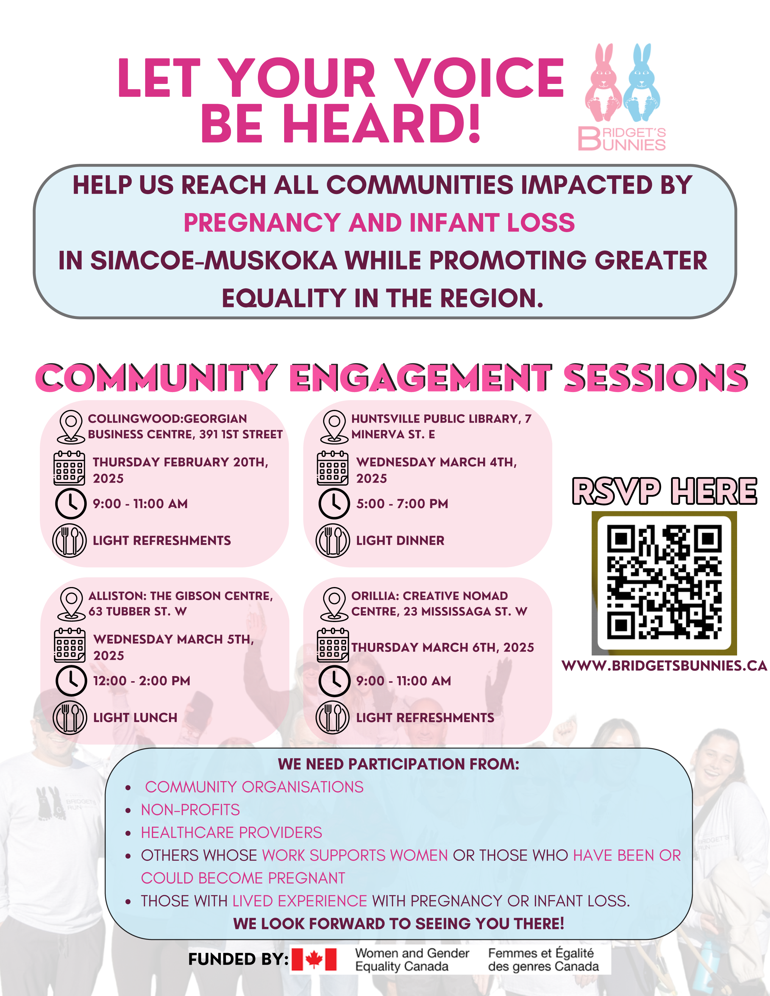 Help us reach all communities impacted by pregnancy and infant loss in Simcoe-Muskoka while promoting greater equality in the region.
