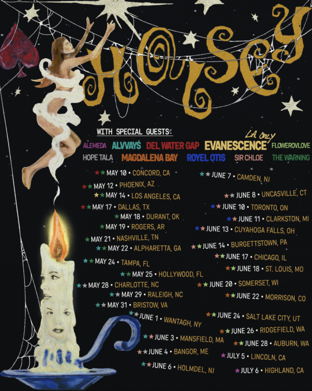 Following the success of their critically acclaimed album The Great Impersonator, and their electrifying festival performances, Halsey is set to deliver an unforgettable live experience, bringing a career-spanning setlist and stunning visuals to fans nationwide. The tour will feature an exciting lineup of special guests, including Del Water Gap, The Warning, Evanescence, Alvvays, Hope Tala, Sir Chloe, Royel Otis, flowerovlove, Magdalena Bay, and Alemeda, appearing on select dates.