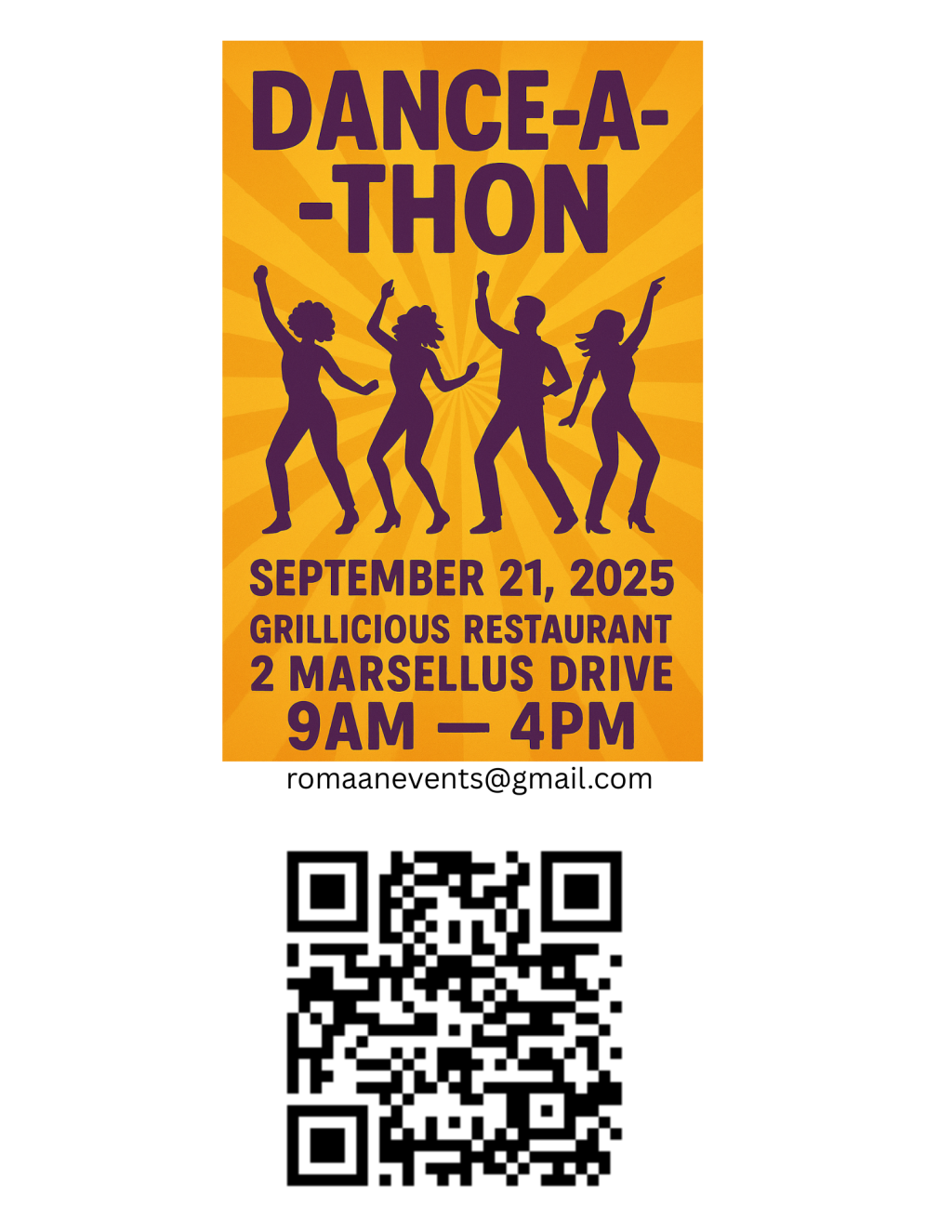 Dance-A-Thon Where Grillicious Restaurant, 2 Marsellus Dr., Barrie Map When Sep 21/25 09:00 AM - Sep 21/25 04:00 PM Age All